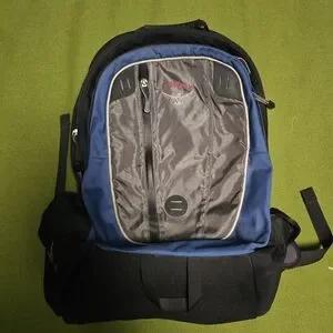 Stylish OSPREY backpack in gray and blue. Ideal for everyday use. Durable and functional design. M/L size