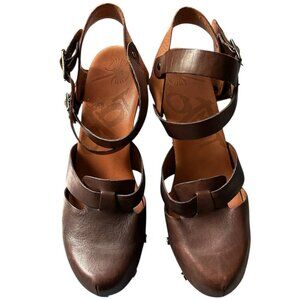 OTBT Brown Ankle Strap Closed Toe Clog Wedges US 9/9.5