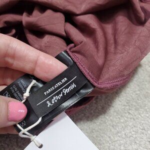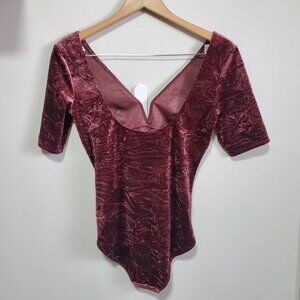 & AND OTHER STORIES NWT Velvet Jacquard Bodysuit SS Stretch V-Neck Burgundy