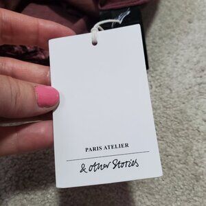 & OTHER STORIES NWT Velvet Jacquard Bodysuit SS Stretch V-Neck Burgundy Womens 6