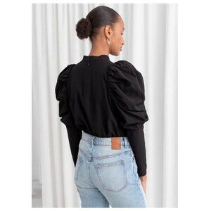 & OTHER STORIES Puff Shoulder Mock Neck Blouse in black - Size S - In Excellent Condition!