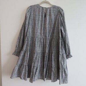 & OTHER STORIES Voluminous Twill Tiered Mini Dress Ditsy Floral Black White Sz M