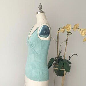 OUI MOMENTS Size 6 Acqua Blue Knitted Viscose Blend Spaghetti Strap Tank Top