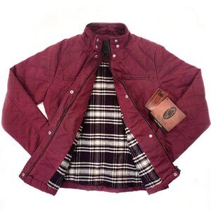 Outback Trading Company has been crafting rugged, weather-resistant outerwear since 1983, inspired by the Australian Outback. This Women’s Stormy Oilskin Jacket in a rich berry shade is fully lined and tailored with a flattering cut, made from lightweight 8 oz. Marshall cloth oilskin that’s both waterproof and breathable. Features stand collar with storm flap, 2-way zipper, chest and hip zip pockets, inside pocket, zip cuffs, snap-adjustable back tab, and side gussets. Size: Women’s Small (underarm to underarm 18”; Length 23”, Sleeve Length 24”). Shell: 65% Polyester, 35% Cotton. BRAND NEW with Tags.