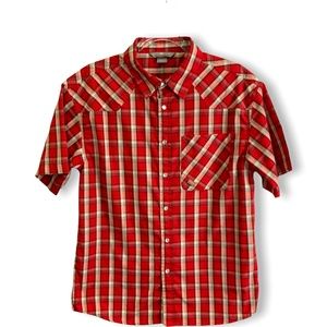 OUTDOOR RESEARCH Western Short Sleeve Plaid Casual Shirt Pearl Snaps Sz M