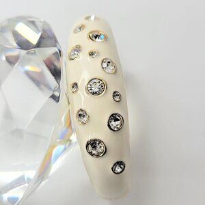 OVAL Hinged Enamel Cream Bangle with Crystals Cuff Bracelet