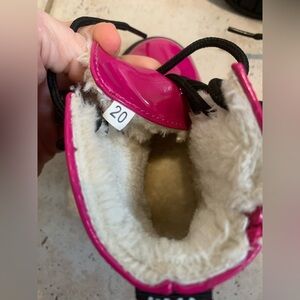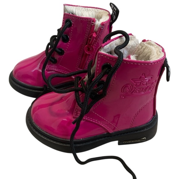 🎀 OVEKOS Hot Pink Patent Fur Lined Toddler Combat Boots EU 20 (4.5/5)