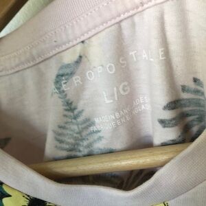 Oversized Aeropostale floral tropical patterned t-shirt. Size Large. A bit longer at back than in front. Great used condition. Perfect top to wear with some wide leg jeans for a casual look. I am a medium but I wear this in a large for a more baggy look.