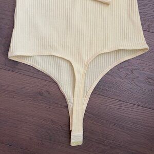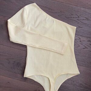 OW Intimates Scandinavia Twiga 1 Shoulder Ribbed Poly Bodysuit Pale Yellow Sz 2