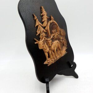 OXEN WAGON Hand Carved 3D Plaque 1970s Ontario Canada 10" Vintage