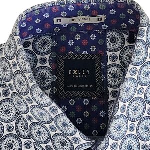 OXLEY, men's shirt, geometric print, button-up, 100% cotton, casual wear, size large, summer shirt, breathable fabric