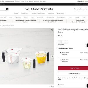 OXO takes the guesswork out of measuring ingredients with its patented angled-surface cup that lets you read the markings along the side and or from above, by looking straight down into the cup.