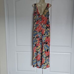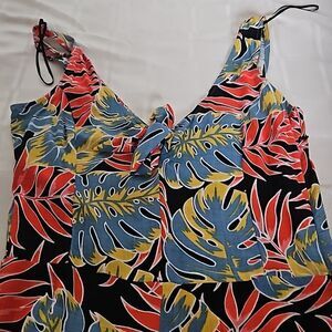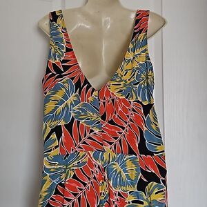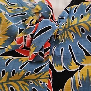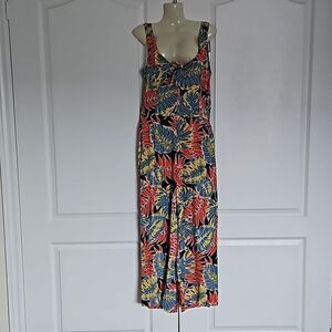 OXXO Women's Tropical Bell- Bottoms Jumpsuit Size Small Red/Blue
