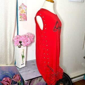 🌷OXYGEN🌷RED Rhinestone Beaded Short Sleeve Dress