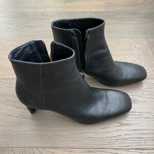 Oak + Fort 5627 2.75" Heeled Leather Booties w Inside Zip Closure Black Sz 8