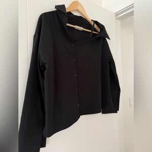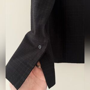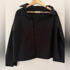 Such a fun shirt! Great condition. Over sized sleeve cuff. Stock model photos are to show style only. The item being sold is the black plaid one shown in seller pictures.
