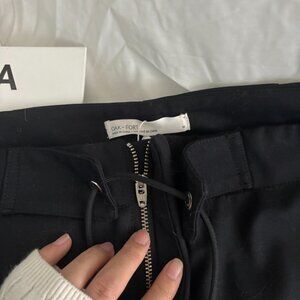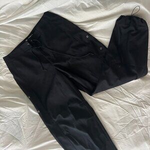 Brand new with tags. There's a ton of super cute details on the front and side. The bottom of the pant legs have an adjustable elastic as well!