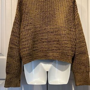 Oak & Fort Brown/Camel Drop Shoulder Crew Neck Boxy Cropped Sweater Size S
