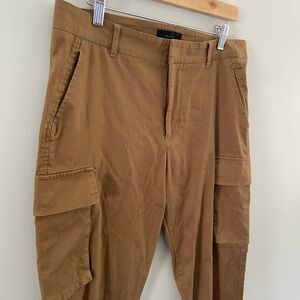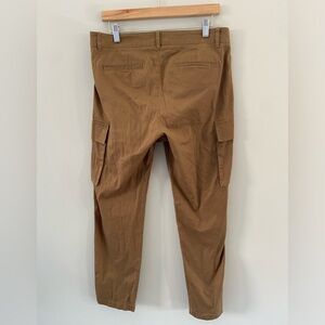 Oak + Fort Cognac Brown Cargo Straight Leg Ankle Cropped Mid Trouser