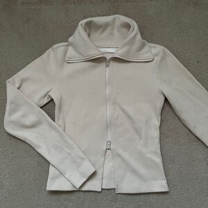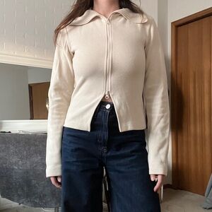 Stylish cream zip-up sweater with a classic collar. Perfect for layering. In good condition!