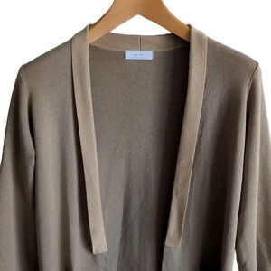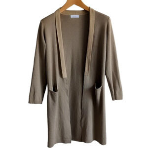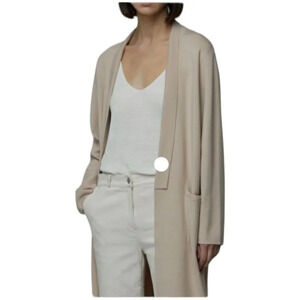 This is a long open sweater in a dark gold colour by OAK + FORT.