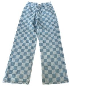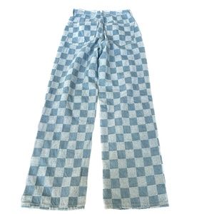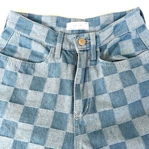 Oak + Fort Jeans Checkered Size XS Straight Leg Light Medium Wash High Rise