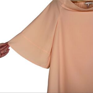 In excellent condition. Oak + Fort mini dress with gorgeous 3/4 bell sleeves and an elastic off the shoulder neckline. In a beautiful pastel peach color with a loose, flowy fit. Flat lay measurements: 17" pit to pit, 28" length.