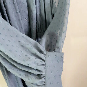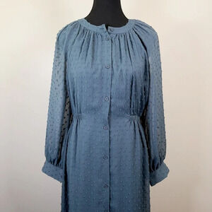 WHAT: Feminine cut midi dress with button closure, elastic waist and sheer sleeves