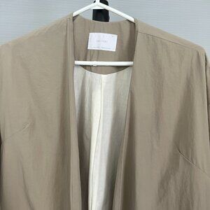 Oak + Fort Tan Collarless Kimono-Inspired Midi Lightweight Lined Open Jacket Coat Sz M