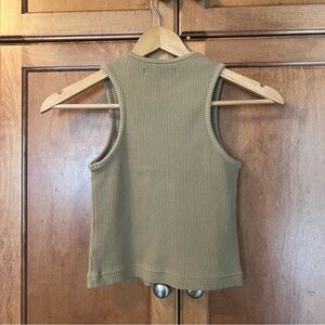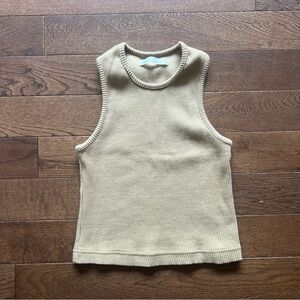 - Tan coloured ribbed Racerback cropped tank top. A really great neutral colour