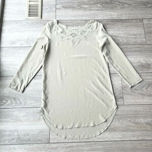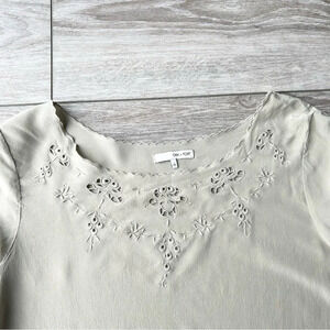 Oak Fort Taupe Pure Silk Laser Cutout Long Sleeve Shift Dress