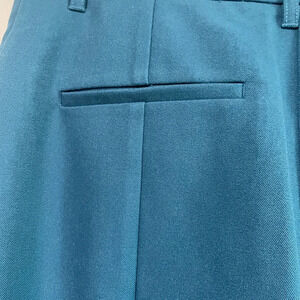 These Oak + Fort teal slim straight pants in size 8 are a stylish and versatile addition to any wardrobe. The high-rise waist and split hem detail add a unique touch to the classic wide-leg design. Perfect for office wear, casual outings, and formal events.