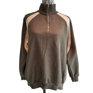 This 1/4 zip pullover sweatshirt showcases contrast details on the shoulders and sleeves, ribbed trims, and a cozy fleece interior for added warmth. Worn only once, it offers you the chance to enjoy the exceptional quality OAK & FORT is known for. With a sleeve length of 28 inches and a body length of 26 inches, this piece is designed for a comfortable and stylish fit.