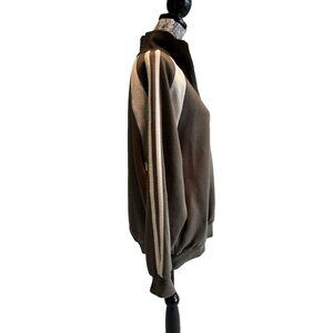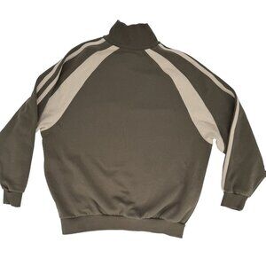 Discover the perfect blend of style and comfort with this preowned OAK & FORT Small-Medium Varsity Half Zip Pullover in Kalamata & fog. Crafted from a high-quality cotton blend (67% cotton, 33% polyester), this relaxed fit hoodie features two subtle stripes running from the neck to the cuff, along with a thicker stripe elegantly underlining the armpit.