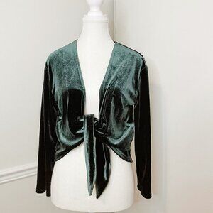 Oak + Fort Velvet Deep Green Front Tie Cardigan S