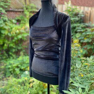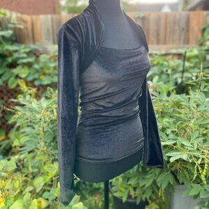 Oak & Fort Velvet Long Sleeve Top – Size S (Black)
