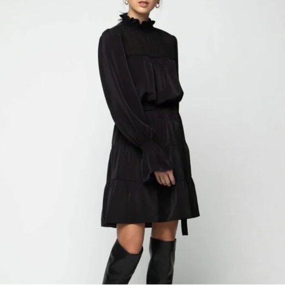 Oak + Fort Women's Long Sleeve High Neck Black Tiered Dress- Size XS- New!