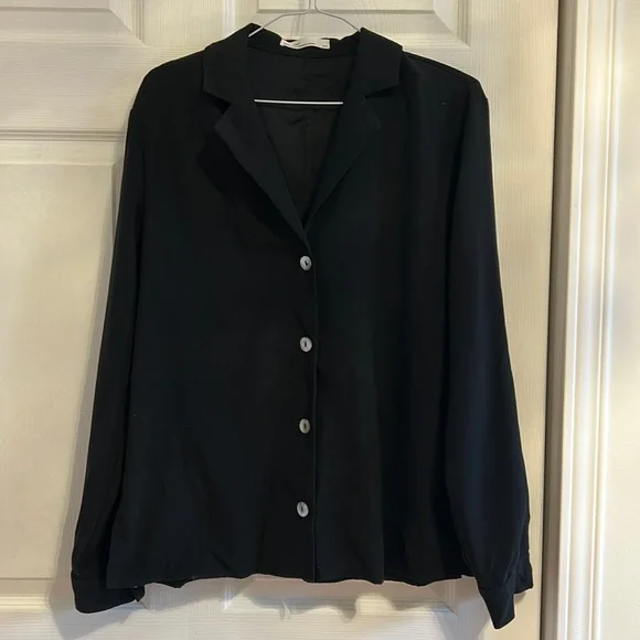 Button down long sleeve black blouse Airy and light Pearl buttons