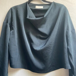 Oak + Fort drape front long sleeve black Oversized blouse Sz XS
