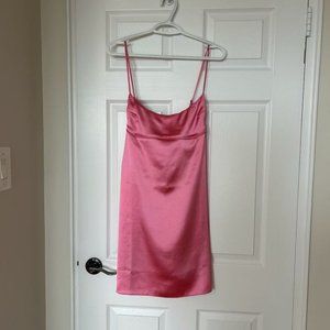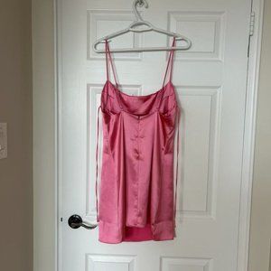 Medium. Relaxed fit. Mini length. Empire waist. Open back with ties.
