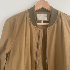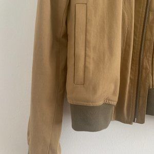 Lightweight, unlined bomber jacket by Oak and Fort. Size small, olive green/taupe-ish colour. Perfect for spring. Fabric: 58% tencel, 40% cotton, 2% spandex.