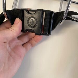 Adjustable strap. Canvas material. Gold accents.