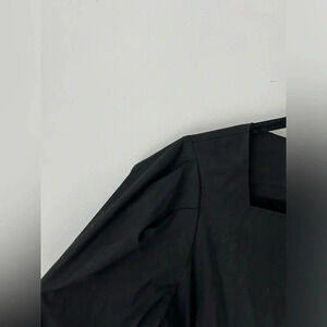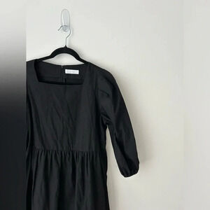 Oversized fit. Midi length. Square neckline. Puff Sleeves. Tiered design.