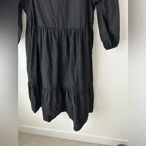 classic to wear from day to night, this puff sleeve dress is cut from woven cotton in an oversized fit. It's detailed with a square neckline and a gathered, tiered design. Wear yours with a chain necklace and heels.