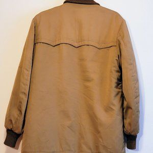 Vintage Sears jacket from the 90s, with a fleece interior to keep you warm in the fall and into the winter. Great condition on this vintage coat with that little western touch of detail trim on the back. Fits Size Medium for an oversized fit, or Large for a more snug fit.