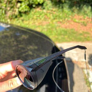 Hard to tell in the pictures, but the frame is black with green and purple splatter. It is stunning!