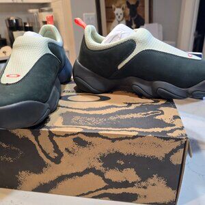 Step into comfort and style with the Oakley Factory Team Flesh x Brain Dead Men's Slides, a collaboration that brings together sleek design and iconic branding. These size 13 sandals boast a unique Meadow / Scarab colorway that stands out in any casual setting. Crafted for the modern man, these slides are as much at home on the beach as they are running errands around town. With their athletic build and durable construction, these Oakley Factory Team Flesh slides offer a perfect blend of form and funct