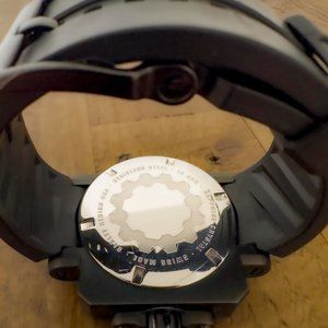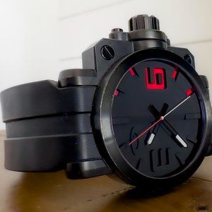 GEARBOX features a five-jewel quartz movement and a uniquely dimensional dial face. Impact forged stainless steel is honed with Computer Numeric Controlled machining and matched with a screw-down crown placed on the left of the chassis for a distinctive look. A durable strap of UNOBTAINIUM® rubber offers all-day comfort. This Oakley original is optimized with the protection of a pure sapphire crystal.