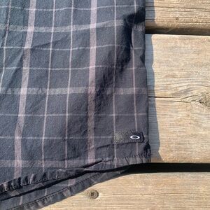 Oakley Men's Plaid Short Sleeve Button-Up Shirt - Black & Gray - Size Large