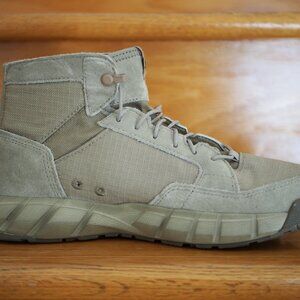 Oakley Urban Explorer Mid boots in Rye color, size 8.5, worn only once and still in new condition, with original box. They're just a ta too small for me (I usually wear size 9), but I suggest you double check with Oakley size charts -- I find these boots do run a bit tight and narrow. Actual color is closer to my pictures and lighter than what Oakly shows (they're not Coyote or FDE).